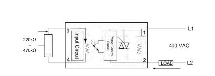Le gradateur doit être protégé contre les surtensions en sortie par une varistance, particulièrement lors de l'utilisation d'une charge inductive.